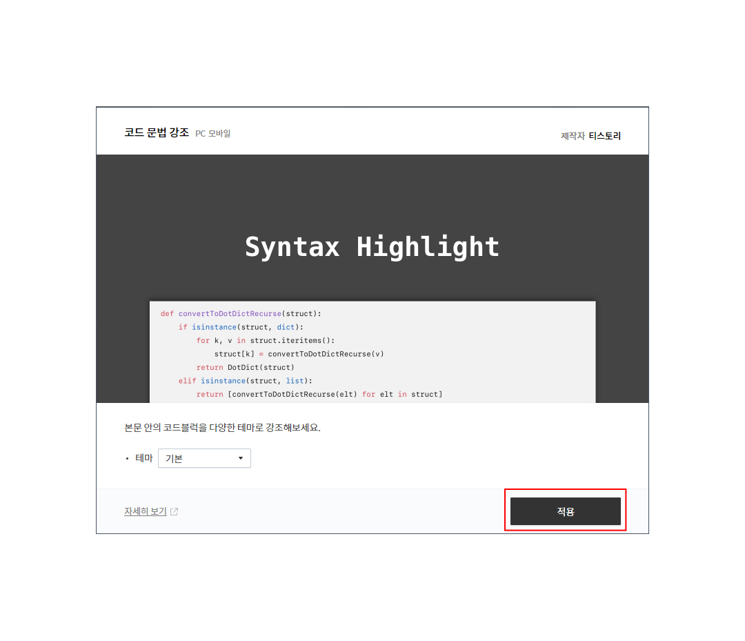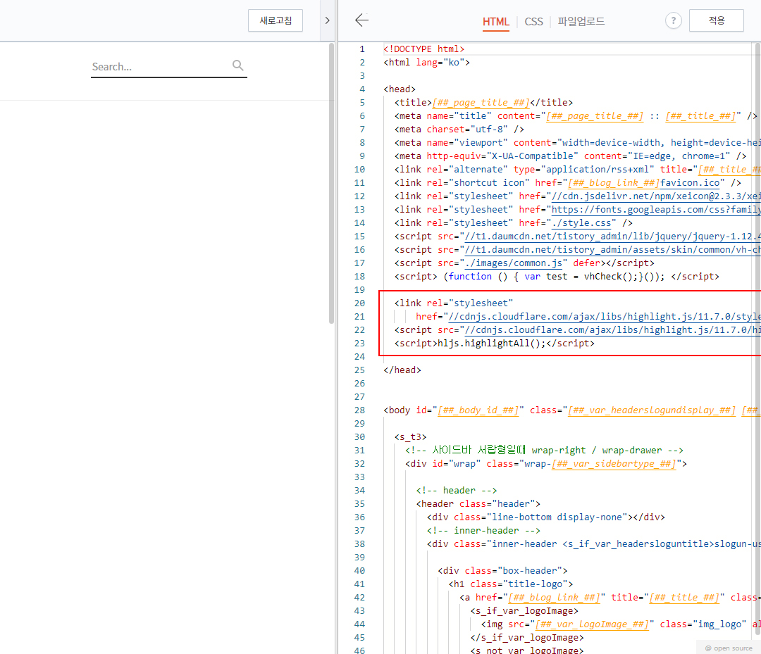티스토리 블로그에 코드 블럭 스킨 적용하는 방법