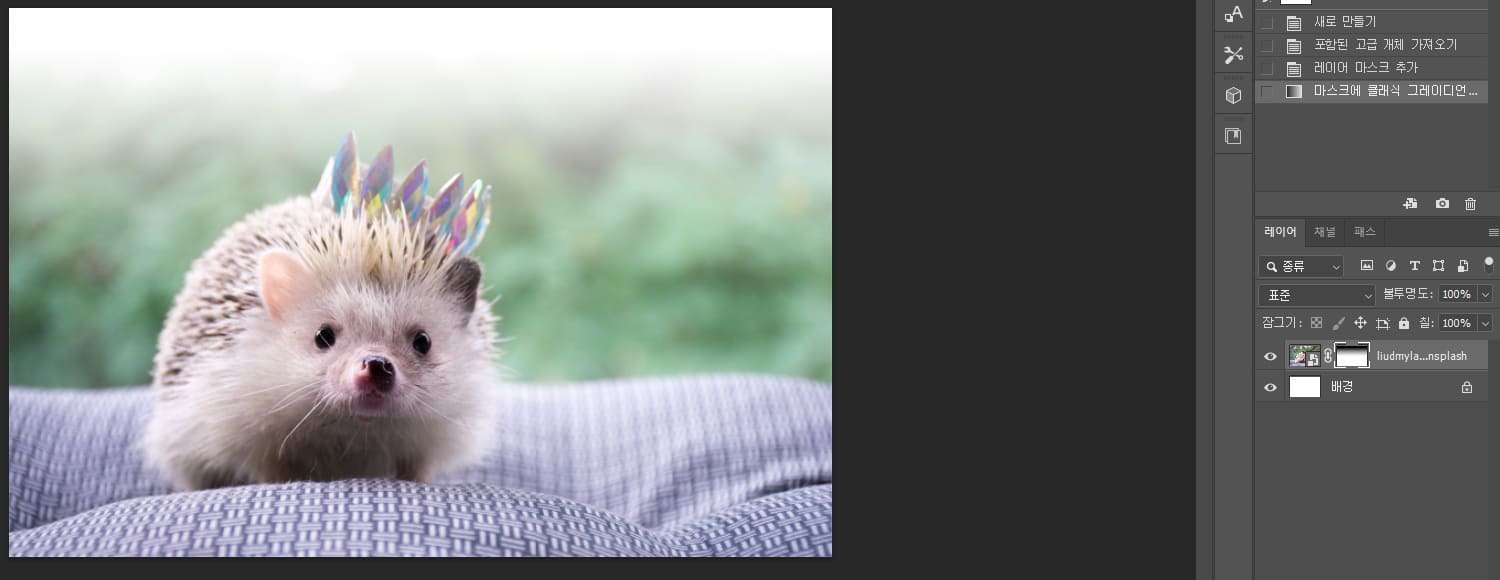 3. 레이어 마스크를 선택하고 그라데이션을 넣어줍니다.