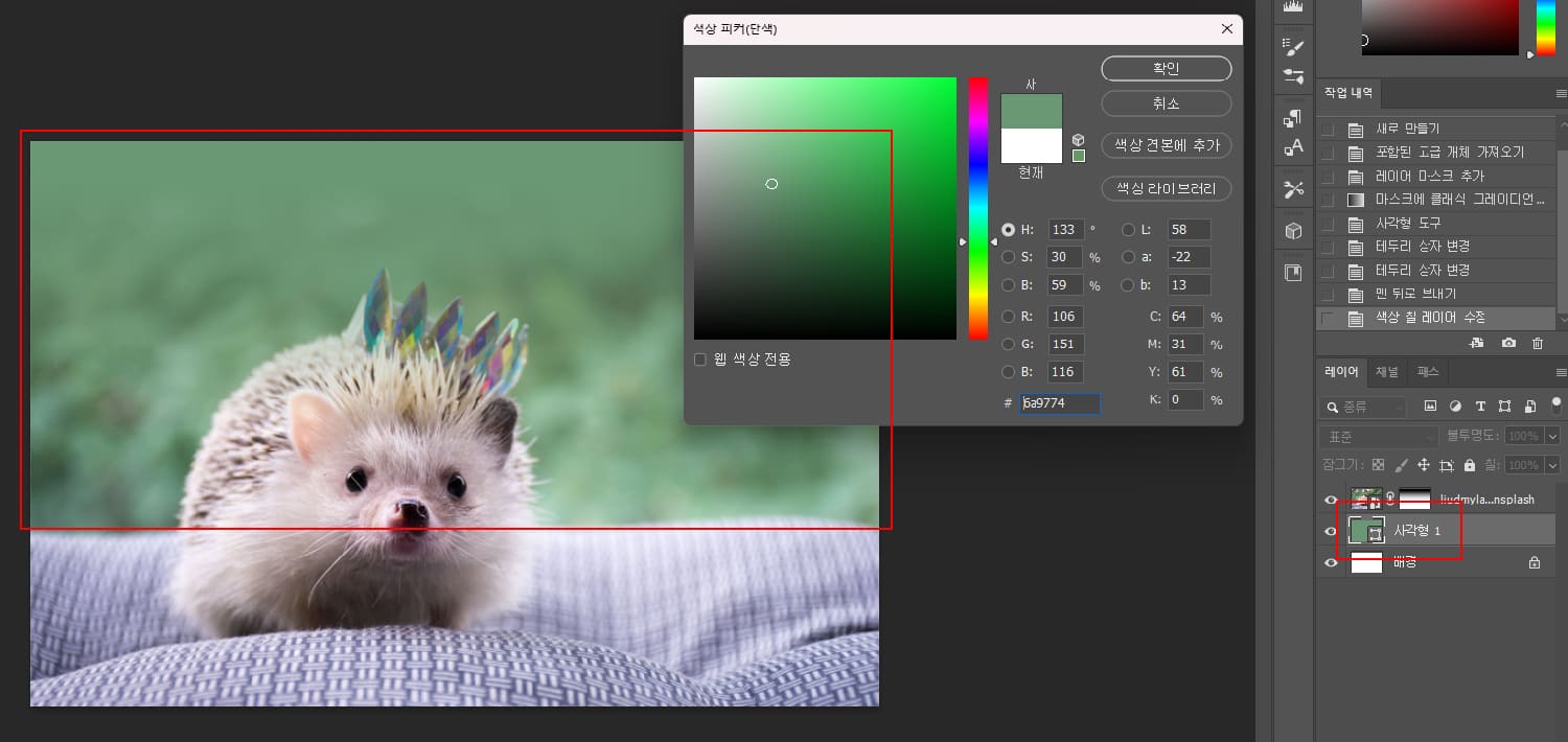 5. 여기서 사이즈에 맞는 사각형을 만들어서 이미지 아래로 레이어를 깔아주도록 합니다.