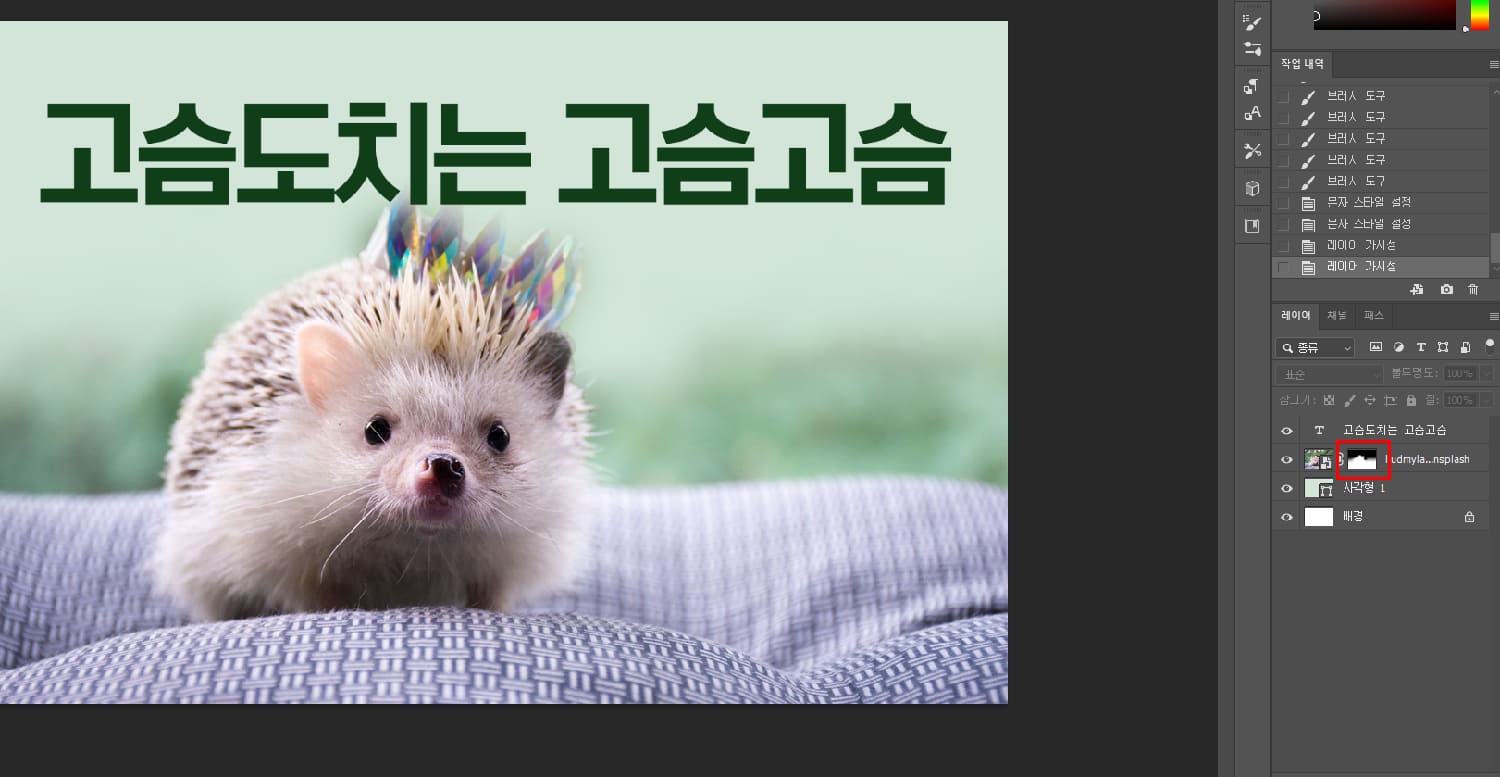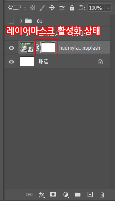 이 마스크가 생기면 레이어마스크가 활성화된 겁니다.