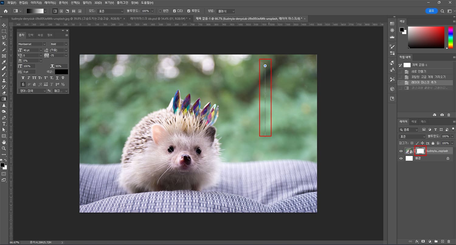 그럼 이 레이어마스크를 활용해서 어떤 식으로 기능을 활용하는지 간단하게 작업을 해보도록 하겠습니다.