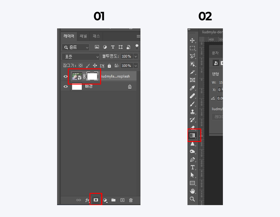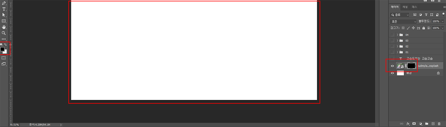 1. 이미지를 선택 후 레이어마스크를 활성화시켜 줍니다.
