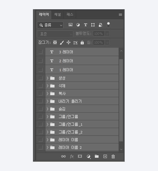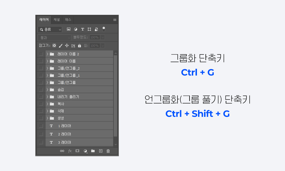 그룹 하고자 하는 레이어들을 선택 후 Ctrl + G를 누르면 그룹